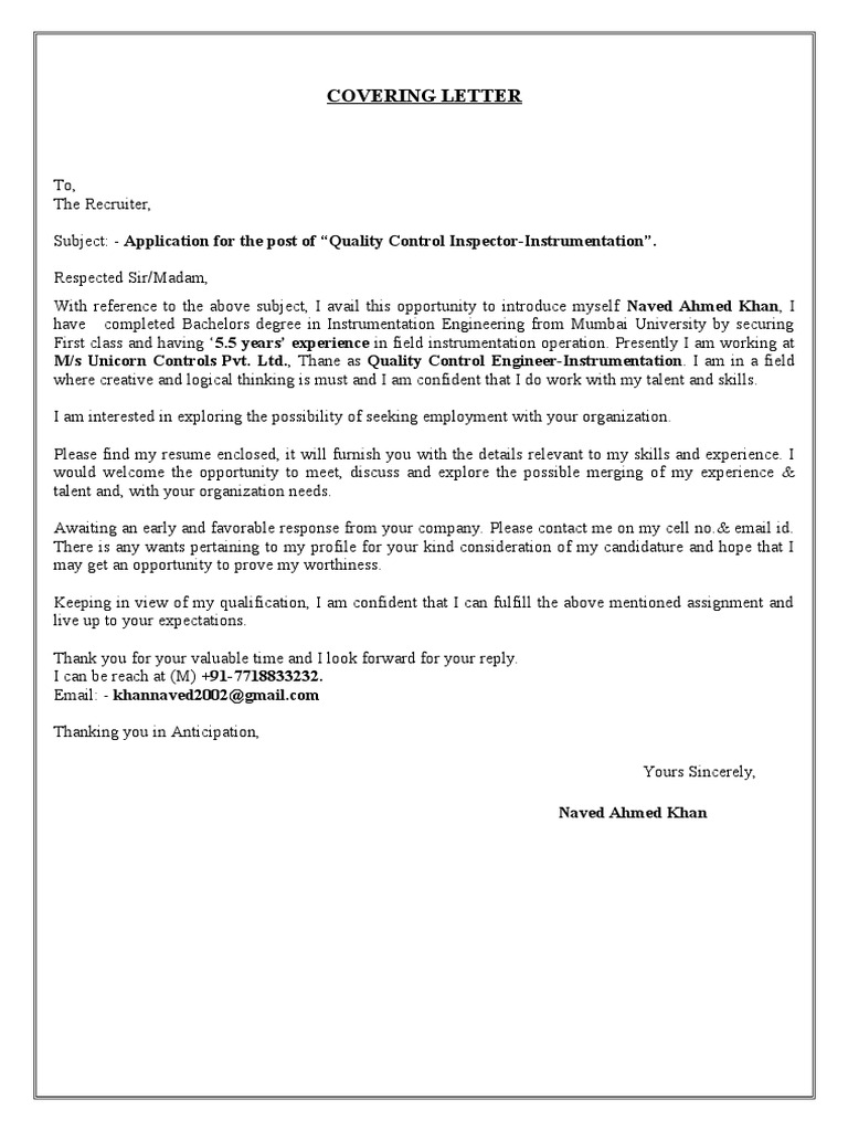 Quality Control Sample Cover Letter Format Download Cover Letter